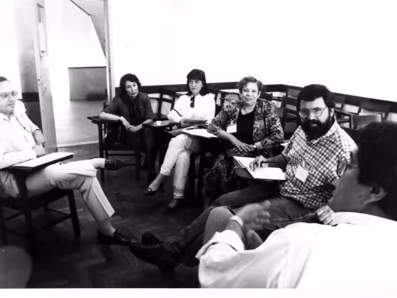 Fotografia do professor William Blough, do Winthrop College (EUA), publicada no Jornal da PUC em matéria sobre a visita de professores americanos ao Departamento de Comunicação Social da PUC-Rio.