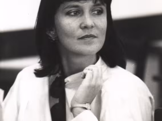 Professora americana não identificada em visita ao Departamento de Comunicação Social da PUC-Rio.