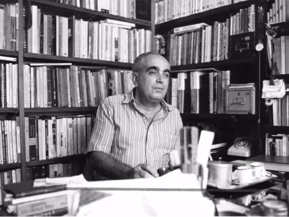 O professor Gilberto Mendonça Teles provavelmente na biblioteca de sua casa.