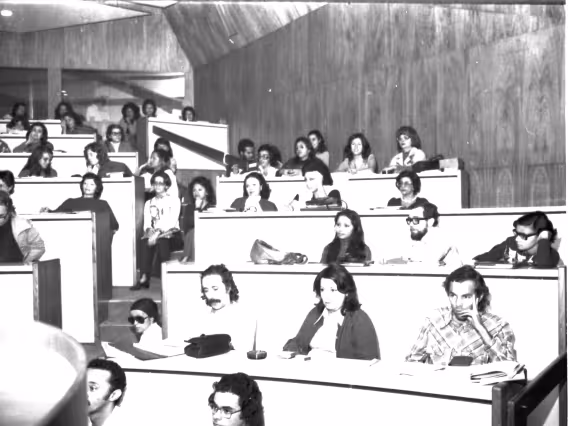 Código exclusivo jf0018_053 Coleção Coleção de Slides da Reitoria Data de criação 01/01/1980 Natureza do documento imagem Tipo de documento slide Descrição Sala de aula com alunos em mesas individuais.