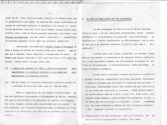 p.6 e 7 - Atualização dos valores das bolsas. Da profissionalização dos pós-graduandos.