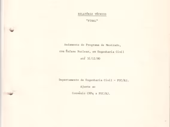 Capa do relatório técnico do programa de mestrado em Engenharia Civil com Ênfase Nuclear.