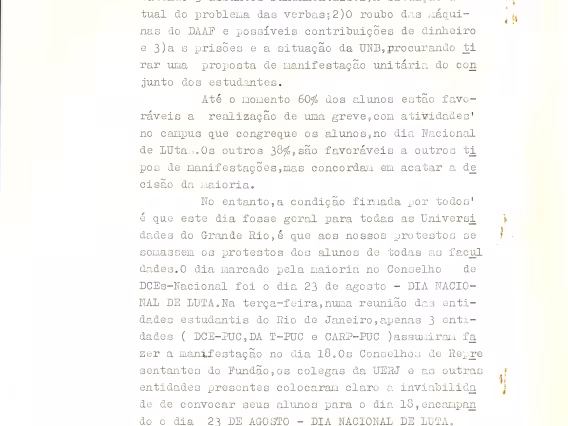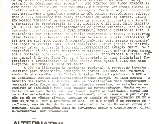 Balanço do que estava sendo realizado pelo movimento estudantil contra a ditadura.