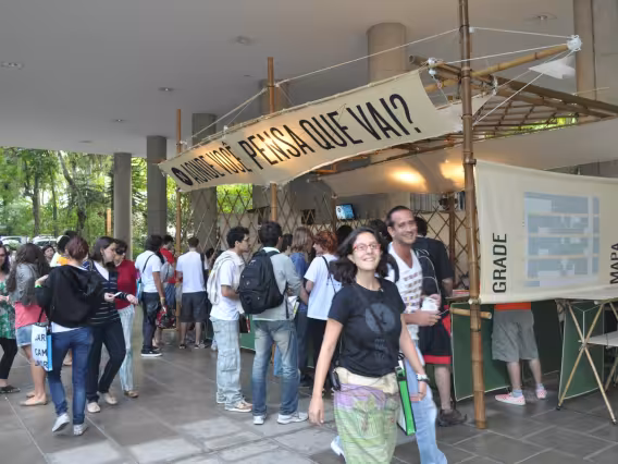 Imagens do campus, provavelmente usadas em publicações do Decanato do CTC. Alunos nos bancos dos pilotis.