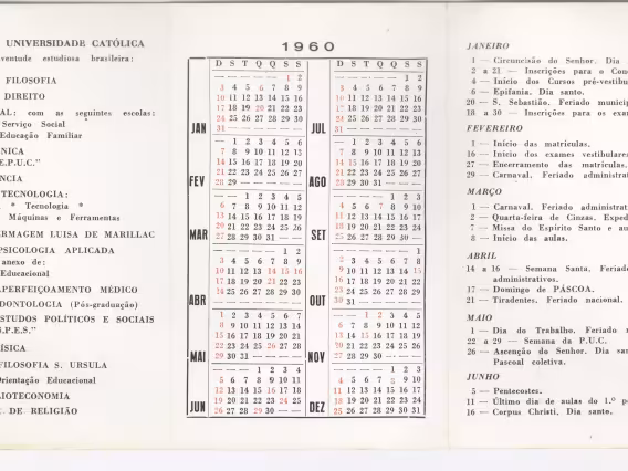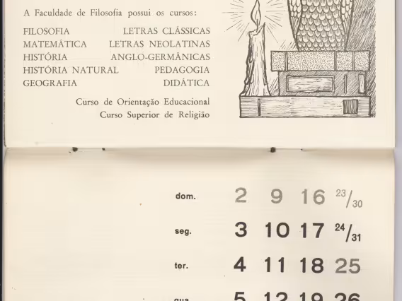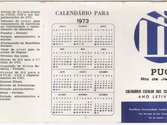 Calendário acadêmico referente ao segundo semestre de 1973 e calendário completo dos meses do ano.