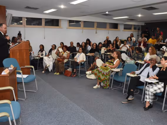 Código exclusivo ms0001_006 Coleção 30 Anos da Parceria dos Pré-Vestibulares Comunitários com a PUC-Rio Data de criação 22/11/2023 Natureza do documento imagem Tipo de documento fotografia cor Descrição Plateia com participantes do evento.