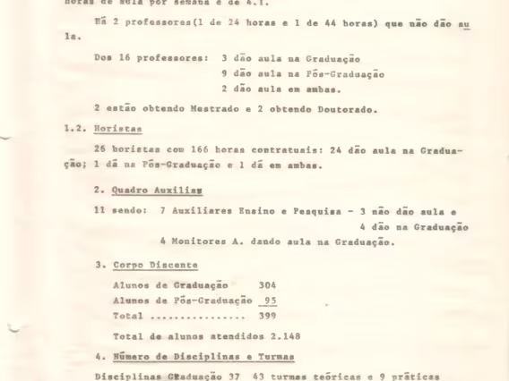 Relatório sem título e autoria com um balanço da Reforma Universitária realizada pela PUC-Rio em 1968. Destaca a reformulação do sistema de ensino em primeiro ciclo, nível profissional e Pós-Graduação; a adoção do regime de créditos; a implantação do sistema regular de orientação aos alunos; a implantação e expansão do ensino de Pós-Graduação e da pesquisa; e a política de contratação de professores de tempo contínuo. Contém ainda listagem dos convênios em vigência na PUC-Rio em 1971 e a relação das universidades brasileiras nas quais a PUC-Rio cooperou para a implantação de novos métodos de administração escolar, a partir da experiência da Universidade com a reforma universitária. Ao final, o relatório traz quadros com números totais de alunos da Graduação e da Pós-graduação por centro de 1971 e 1972; número total de professores de tempo contínuo e horistas por centro de 1972; número de alunos matriculados de 1941 a 1972; e os valores das despesas orçamentárias da Universidade em 1972.