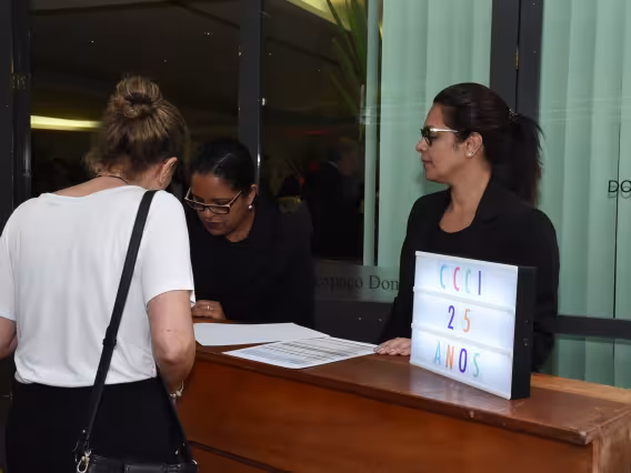 Fotografia do ex-reitor pe. Velloso S.J. no evento comemorativo dos 50 anos da PUC-Rio.
