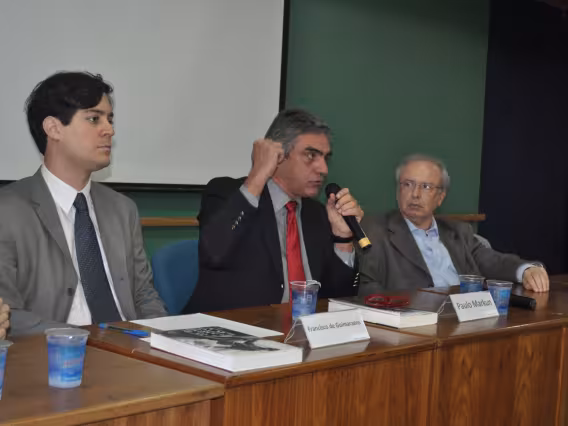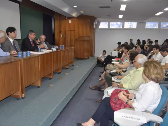 Paulo Markun oferece aula magna no Departamento de Direito da PUC-Rio. Sua palestra, 'A Rede de Legalidade', que inaugurou o Ciclo de Debates sobre os 50 anos da Rede, foi acompanhada por vários professores e alunos.