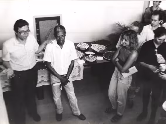 Professor Augusto Sampaio assiste a homenagem em vídeo feita pelos funcionários da Comunitária.