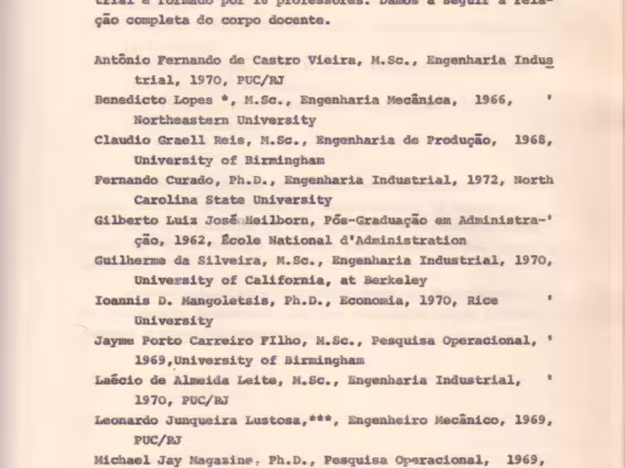 Seção referente à 'Física', que contém o nome do coordenador do programa, lista de professores e programas, no Catálogo oficial da Escola Graduada de Ciências e Engenharia (EGCE), 1968 - 1969.