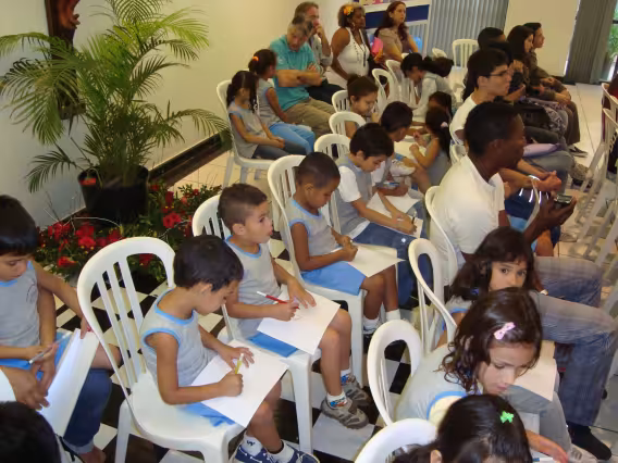 Crianças integrantes do projeto do NEAM, na comunidade da Rocinha.