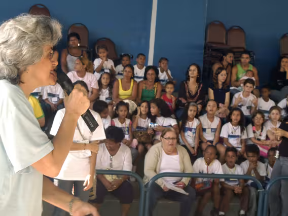 Crianças de escola particular participam de atividade desenvolvida na Feira de Desenho Vivo. Aprendem a fazer massinha de modelar comestível.