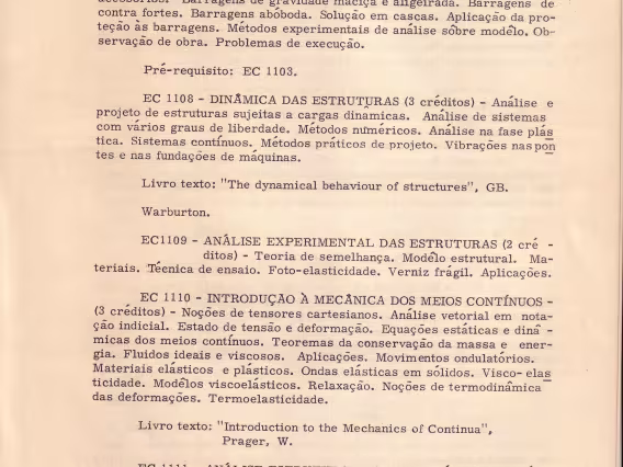 Seção referente à 'Engenharia civil', contendo a continuação da ementa das disciplinas, no Catálogo oficial da Escola Graduada de Ciências e Engenharia (EGCE), 1968 - 1969.