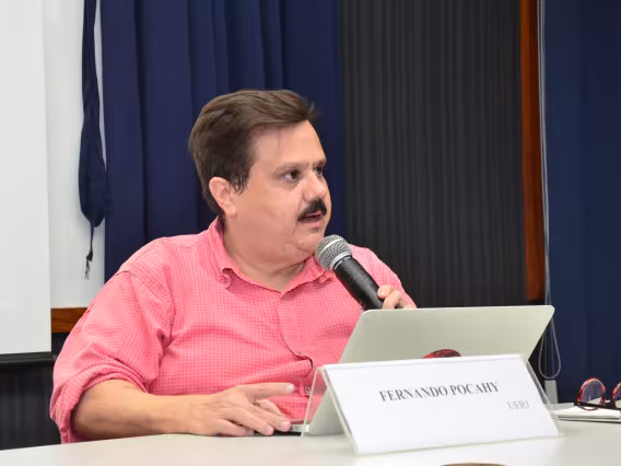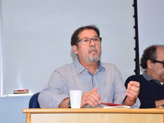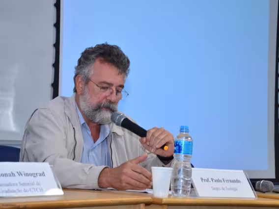 O professor Paulo Fernando Carneiro de Andrade, do Departamento de Teologia, na Plenária de encerramento do II Colóquio de Pós-Graduação com o tema Humanidades em tempo de cólera.