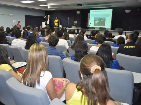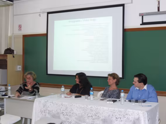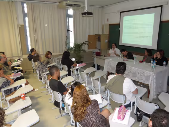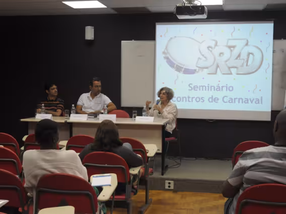 Encontros de Carnaval', evento realizado na sala 102-K do Edifício Kennedy, com a participação de Hélio Ricardo Rainho, do projeto SRZD, Roberto Almeida, vice-presidente administrativo da São Clemente e Raquel Valença, blogueira do projeto SRZD.