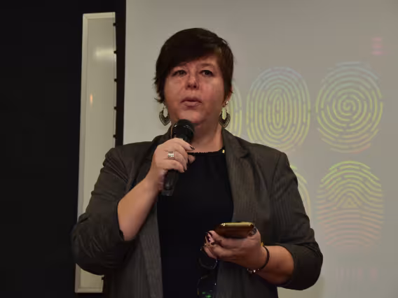A professora da UFMG e do Departamento de Letras, Eneida Maria de Souza, na sessão de autógrafos do livro intitulado 35 Ensaios de Silviano Santiago.