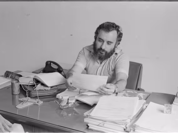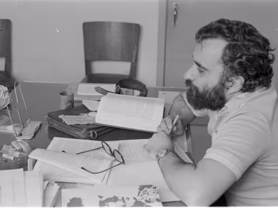 Fotografia do professor Winston Fritsch publicada em entrevista no Jornal da PUC a respeito da dívida externa brasileira.