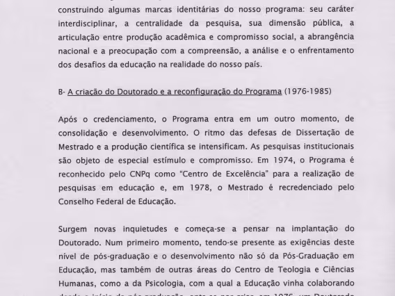 Artigo da professora Vera Candau intitulado 'A PUC-Rio e a Pós-Graduação em Educação no Brasil', que analisa o processo de implantação do programa de Pós-Graduação no Departamento de Educação da PUC-Rio.