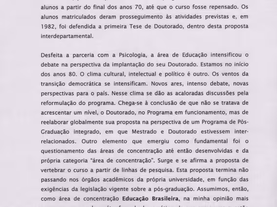 Artigo intitulado 'Em direção à análise da evolução da 'Área de planejamento educacional' à linha 'Democratização do ensino' nos vinte anos de Mestrado em Educação da PUC/RJ' de autoria da professora Elizabeth Cassimiro de Freitas, apresentado no seminário dos 20 anos do mestrado em Educação da PUC-Rio.
