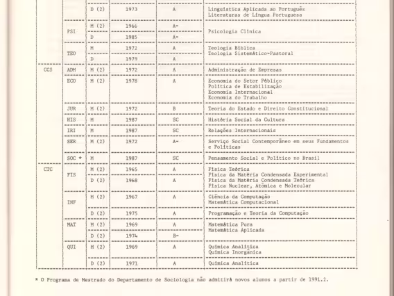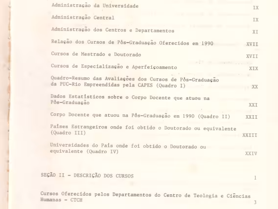 Relação dos cursos de pós-graduação oferecidos pelo CTCH, CCS e CTC em 1990.