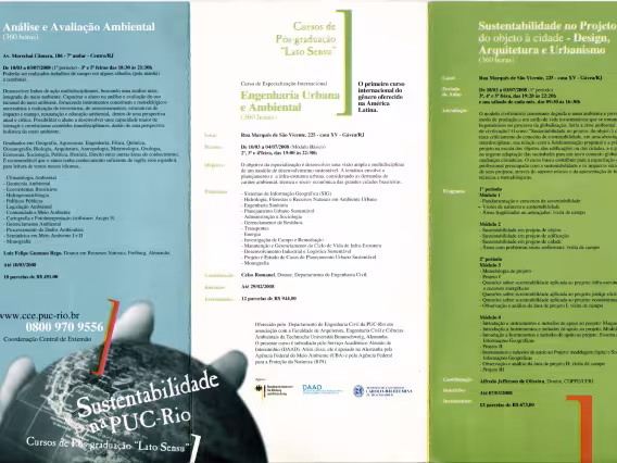 Apresentação de cursos sobre sustentabilidade oferecidos pela Coordenação Central de Extensão. Cursos de pós-graduação Lato Sensu. Análise e avaliação ambiental, Engenharia Urbana e Ambiental, Sustentabilidade no Projeto: do objeto à cidade - Design, arquitetura e urbanismo.