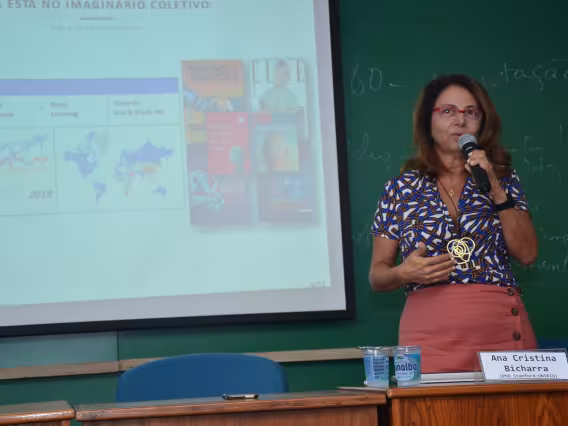 O Ministro da Fazenda, Pedro Malan, e aluno na aula inaugural do Departamento de Economia.