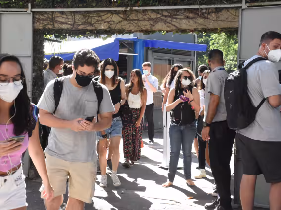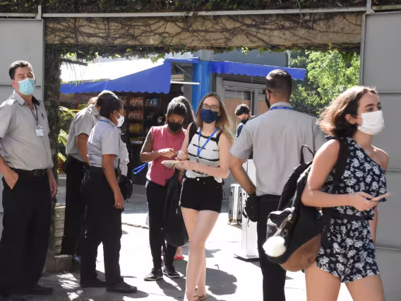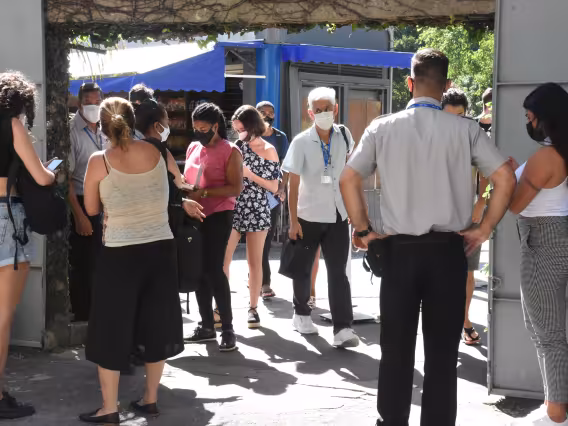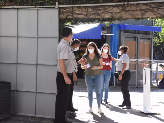 Guarda confere o comprovante de vacinação contra COVID-19 para acesso ao campus.