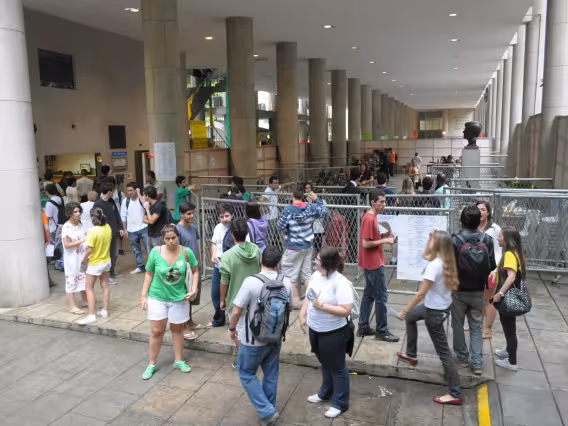 Alunos na fila para votar nas eleições do DCE e dos CAs de seus cursos.