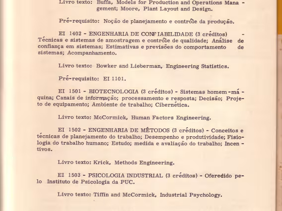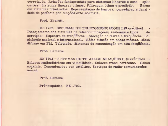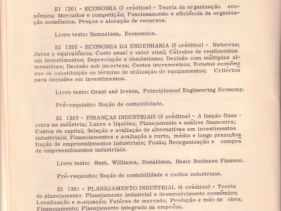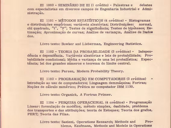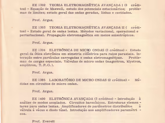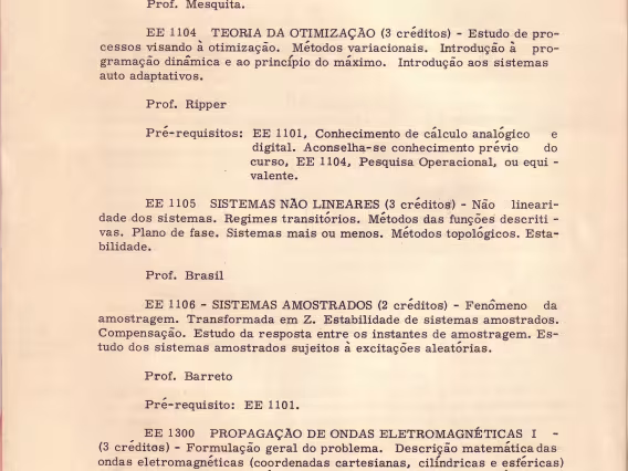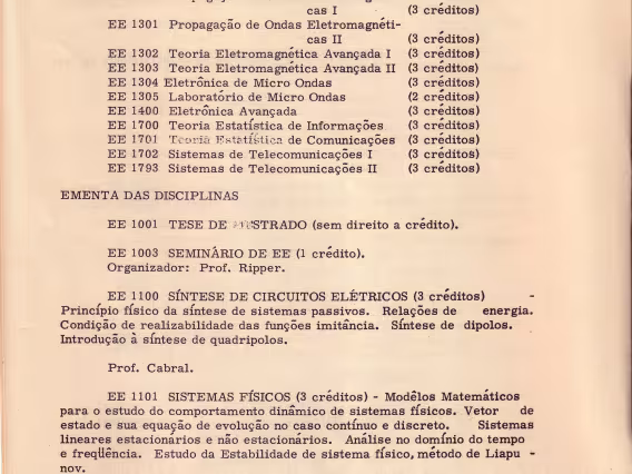 Ementa das disciplinas no Catálogo oficial da Escola Graduada de Ciências e Engenharia (EGCE), 1968 - 1969.