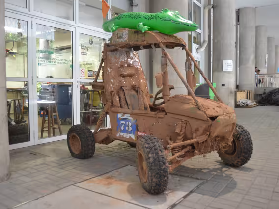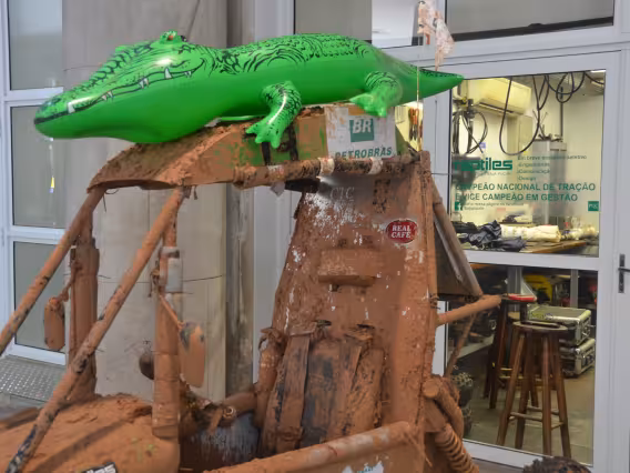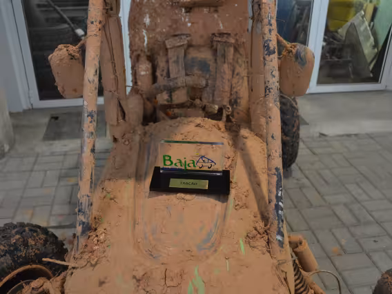 Prêmio concedido à equipe Reptiles da PUC-Rio pela conquista do primeiro lugar na categoria "Tração", na competição Baja SAE Brasil, com o carro Caiman.