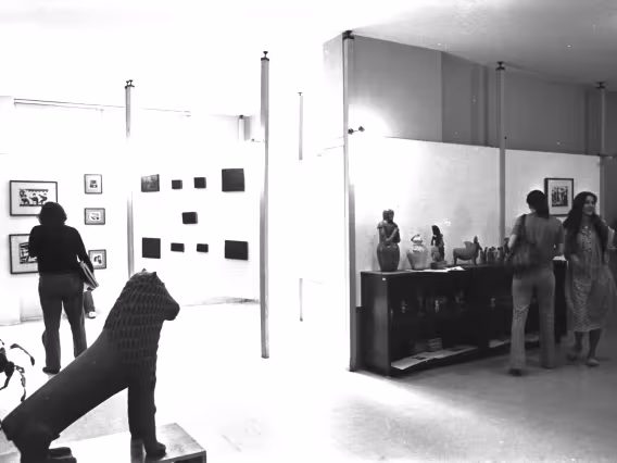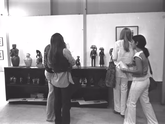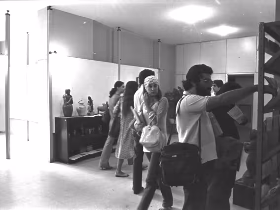 Armário da sala de entrada da reitoria com placas, diplomas e esculturas recebidas de instituições e memorabílias da PUC-Rio.