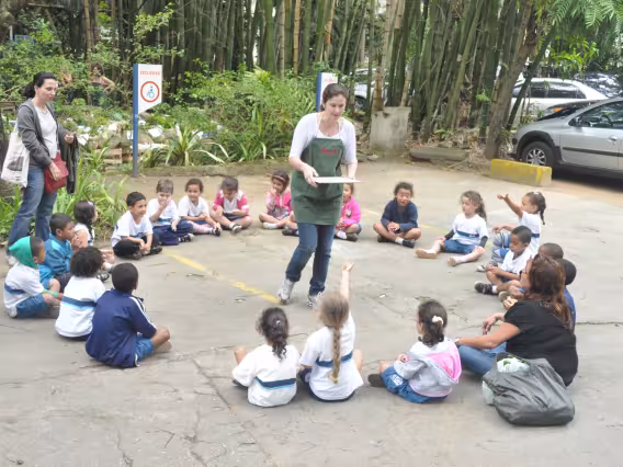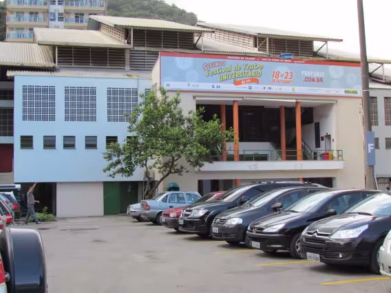 Vista do estacionamento principal. Ao fundo, o conjunto habitacional Marquês de São Vicente.