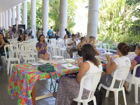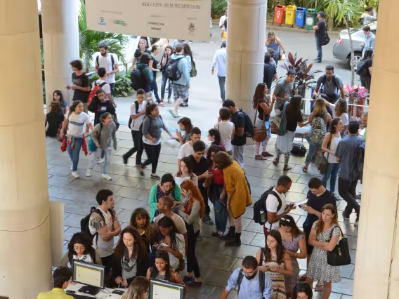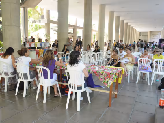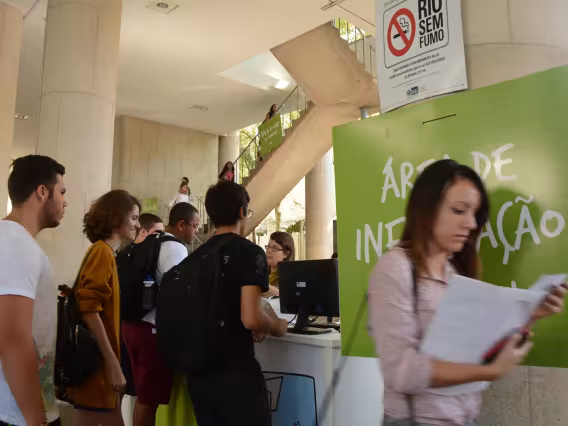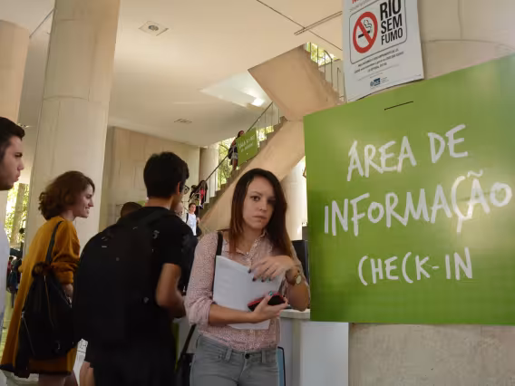Estandes da XVIII Mostra PUC. Check-in e cadastro de estudantes.