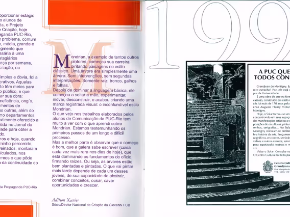 Folder sobre o Núcleo de Criação do Projeto Comunicar. Campanhas produzidas ao longo dos anos. Centro Cultural Banco do Brasil e Comitê Pela Democratização da Informática.