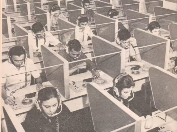 Deficientes visuais do Instituto Benjamin Constant, prestando vestibular no Laboratório de Línguas.