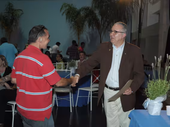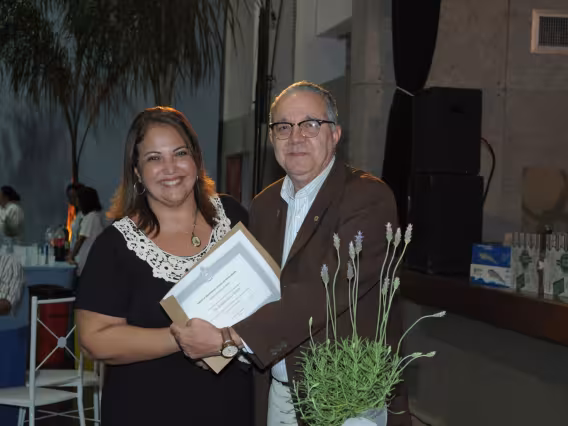 A professora Márcia Guarischi Côrtes recebe o diploma de Honra ao Mérito do Reitor Padre Josafá S.J. em homenagem aos 25 de dedicação à PUC-Rio.