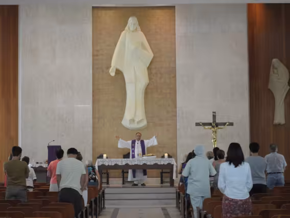 Código exclusivo eg0124_007 Coleção Missa de um ano do falecimento do professor Luíz César Monnerat Tardin Data de criação 05/03/2012 Natureza do documento imagem Tipo de documento fotografia cor Descrição Padre Luís Corrêa Lima S.J. preside a missa.