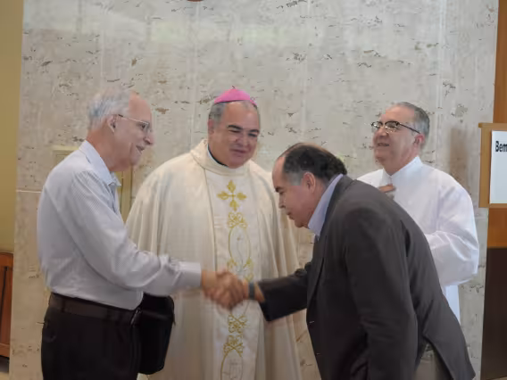 Código exclusivo mp0003_001 Coleção Missa em comemoração ao Sagrado Coração de Jesus, patrono da PUC-Rio Data de criação 15/06/2012 Natureza do documento imagem Tipo de documento fotografia cor Descrição Padre Josafá e Dom Orani João conversam com religiosos e funcionários no final da missa.