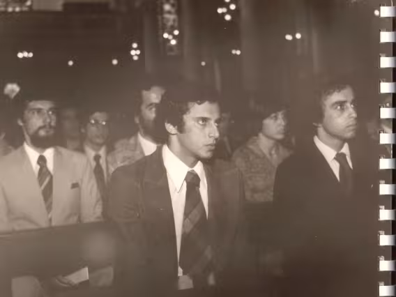 Antiga capela da PUC-Rio, no térreo do Edifício Cardeal Leme, com o crucifixo de madeira que agora [2017] está na Igreja do Sagrado Coração de Jesus.