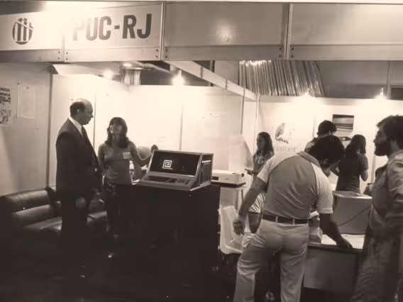 Visita do Reitor pe. Mac Dowell S.J. aos stands do XIII Congresso Nacional de Processamento de Dados.