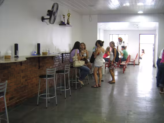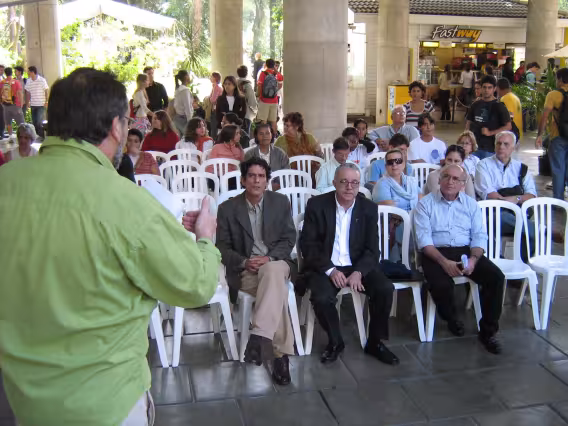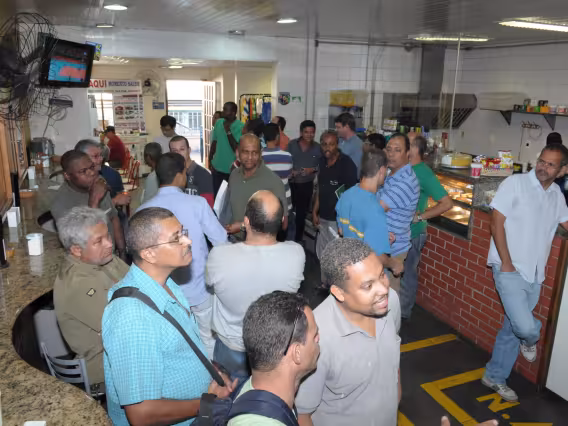Funcionários reunidos na comemoração do Dia dos Pais.