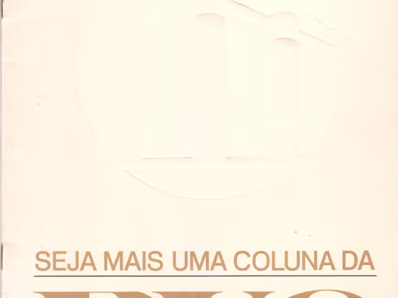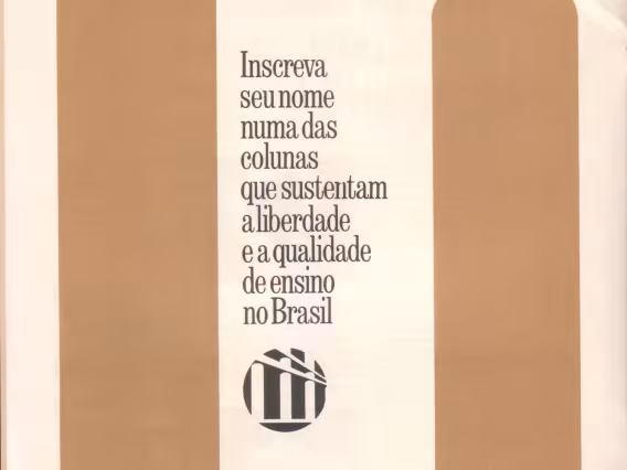 Página do folder de divulgação da Campanha Financeira "Seja mais uma coluna da PUC". "Inscreva seu nome numa das colunas que sustentam a liberdade e a qualidade de ensino no Brasil".