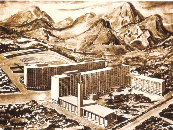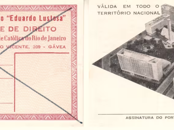 Carteira do Centro Acadêmico Eduardo Lustosa - frente, e verso com maquete da PUC-Rio.
