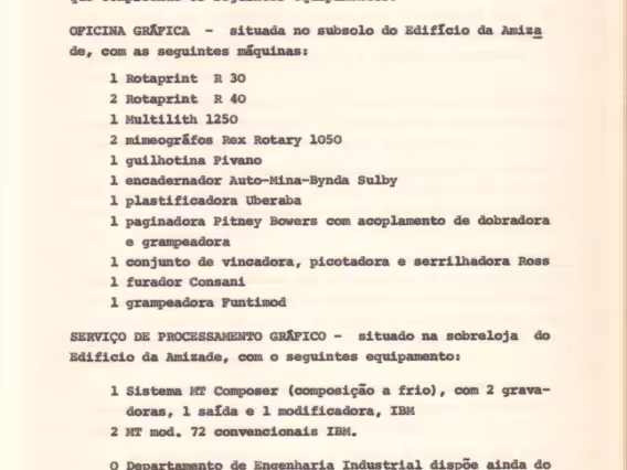 Laboratório do ITUC. Vista geral das oficinas mecânicas.