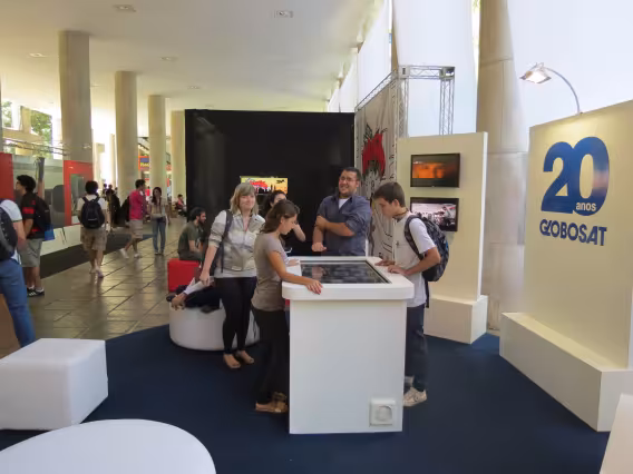 Instalação da exposição 'Centenário David Ogilvy' aproveita o busto de Kennedy nos pilotis. O evento foi realizado por alunos dos Departamentos de Comunicação e de Artes e Design da PUC-Rio em homenagem ao célebre publicitário escocês.