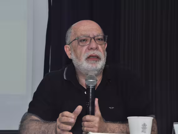 O professor Sergio Besserman, do Departamento de Economia, na palestra sobre visões da Amazônia.