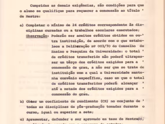 Código exclusivo cg0017_038 Coleção Credenciamento do Curso de Mestrado em Engenharia Industrial (Produção) no Conselho Federal de Educação - 1973 Data de criação 01/01/1973 Descrição Página 95. Condições para que o aluno se qualifique para requerer a concessão ao título de mestre.