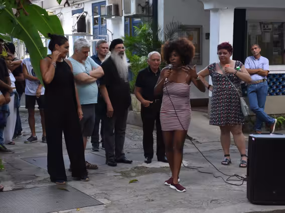 Código exclusivo lm0003_006 Coleção Cerimônia extra-oficial de nomeação da Vila dos Diretórios Marielle Franco Data de criação 14/03/2019 Natureza do documento imagem Tipo de documento fotografia cor Descrição Discurso do professor e Vice-reitor Comunitário Augusto Sampaio.