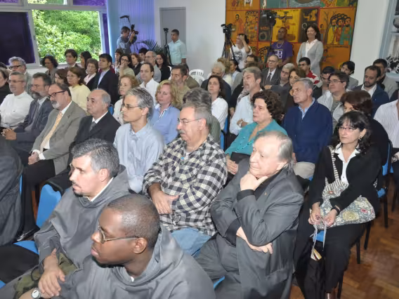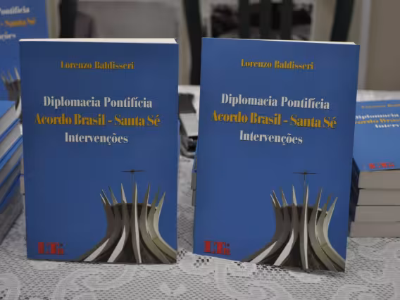 O Núncio Apostólico no Brasil, Dom Lorenzo Baldisseri, autografa seu livro 'Diplomacia Pontifícia - Acordo Brasil-Santa Sé - Intervenções', lançado aquele dia, na PUC-Rio